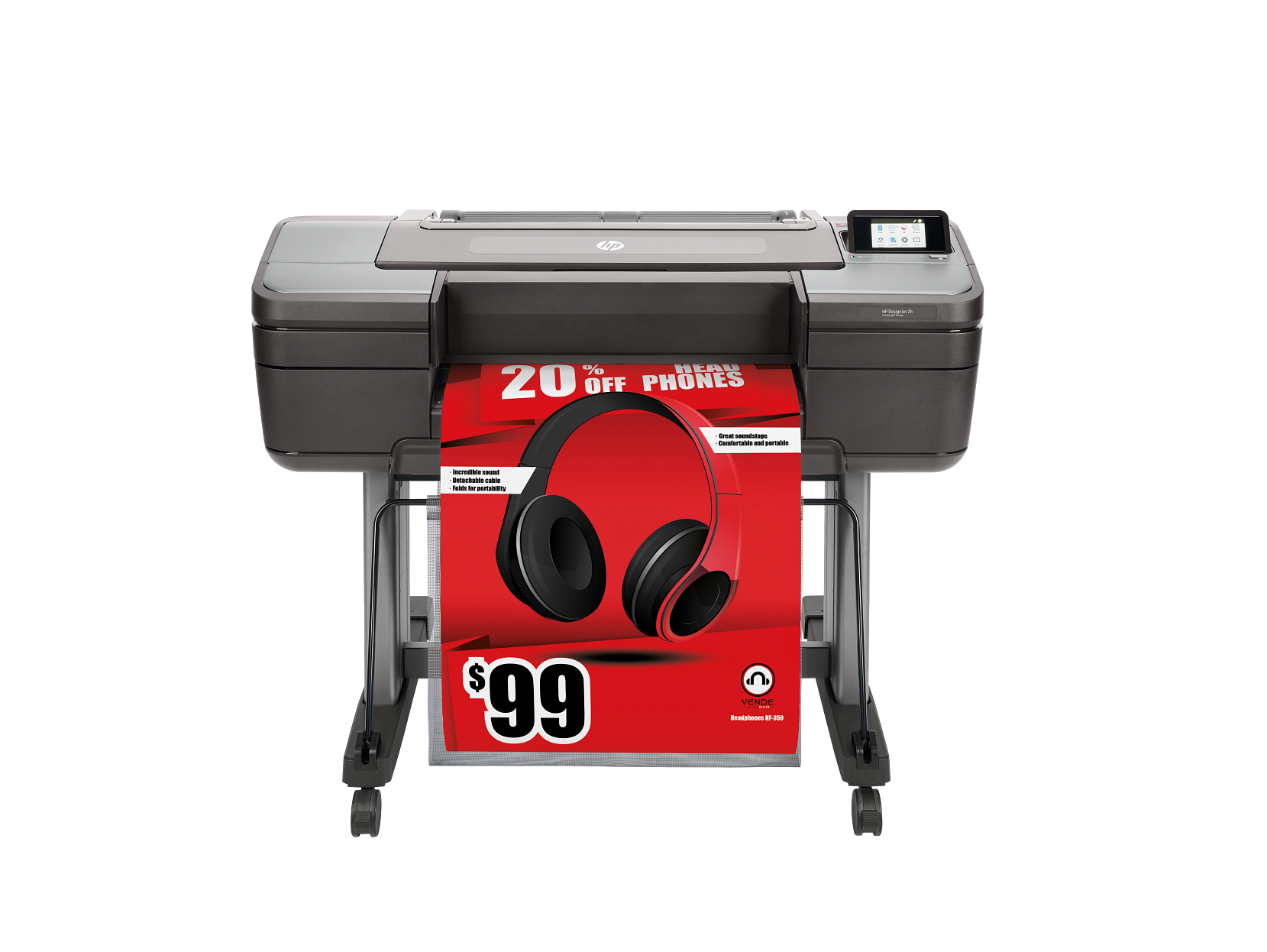 Wysoka jakość druku plakatów i fotografii. Sześciokolorowa drukarka wielkoformatowa dostępna w szerokości 24 oraz 44 cali. Pigmentowe atramenty o pjemności 300 ml: cyan, magenta, yellow, czarny matowy, czarny fotograficzny, chromatyczny czerwony.